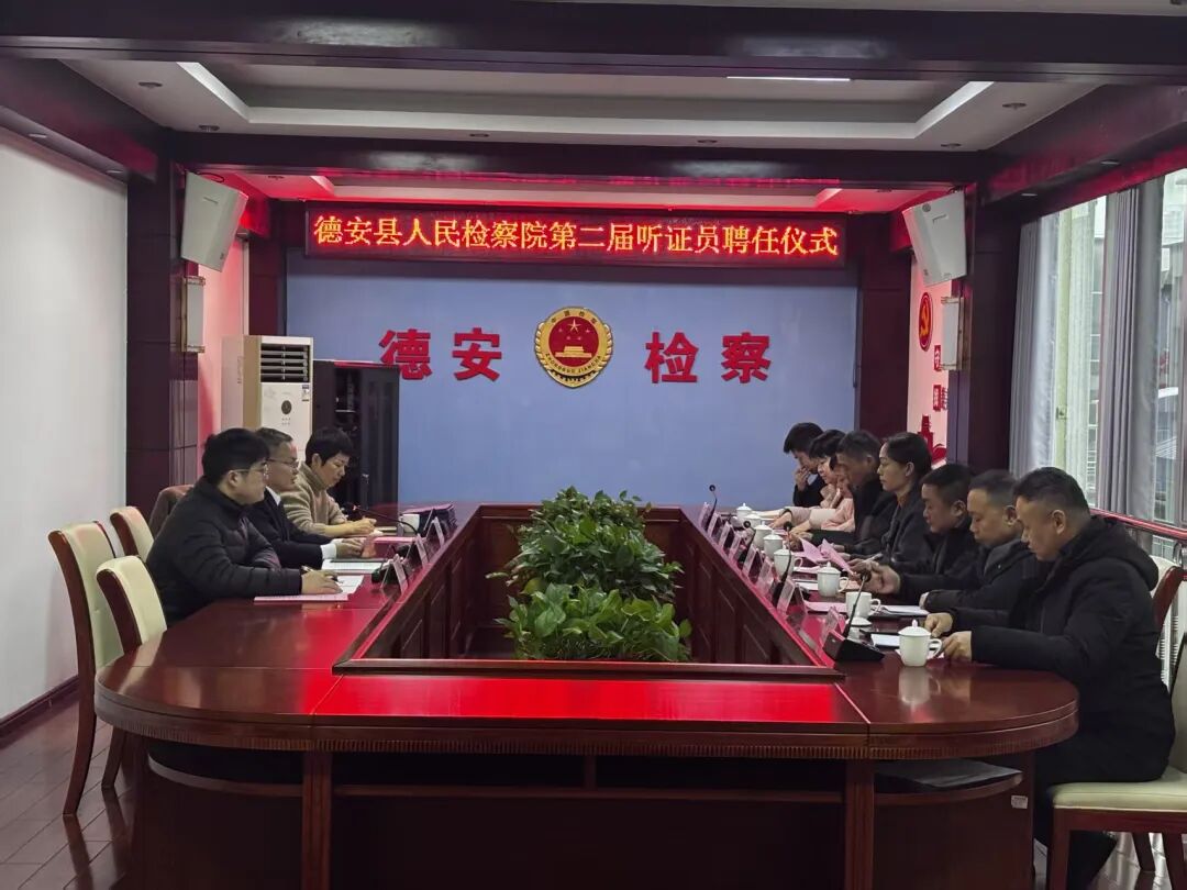 为深入贯彻落实最高检关于检察听证工作的部署要求,进一步推动检察听证工作规范化、专业化、常态化,增强司法透明度和公信力。12月24日上午,德安县检察院举行第二届听证员聘任仪式,聘请10名来自不同行业领域的人士担任听证员。院检委会专职委员、第三检察部主任王海宝主持会议。